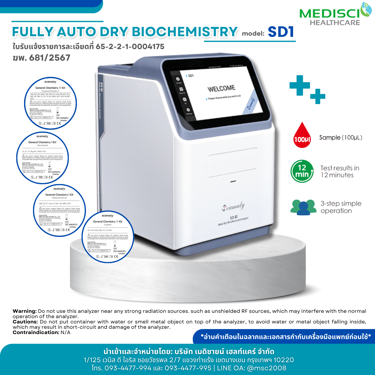 - เครื่องตรวจวิเคราะห์: ตัวเครื่อง SD1 (Auto Dry Biochemistry Analyzer)